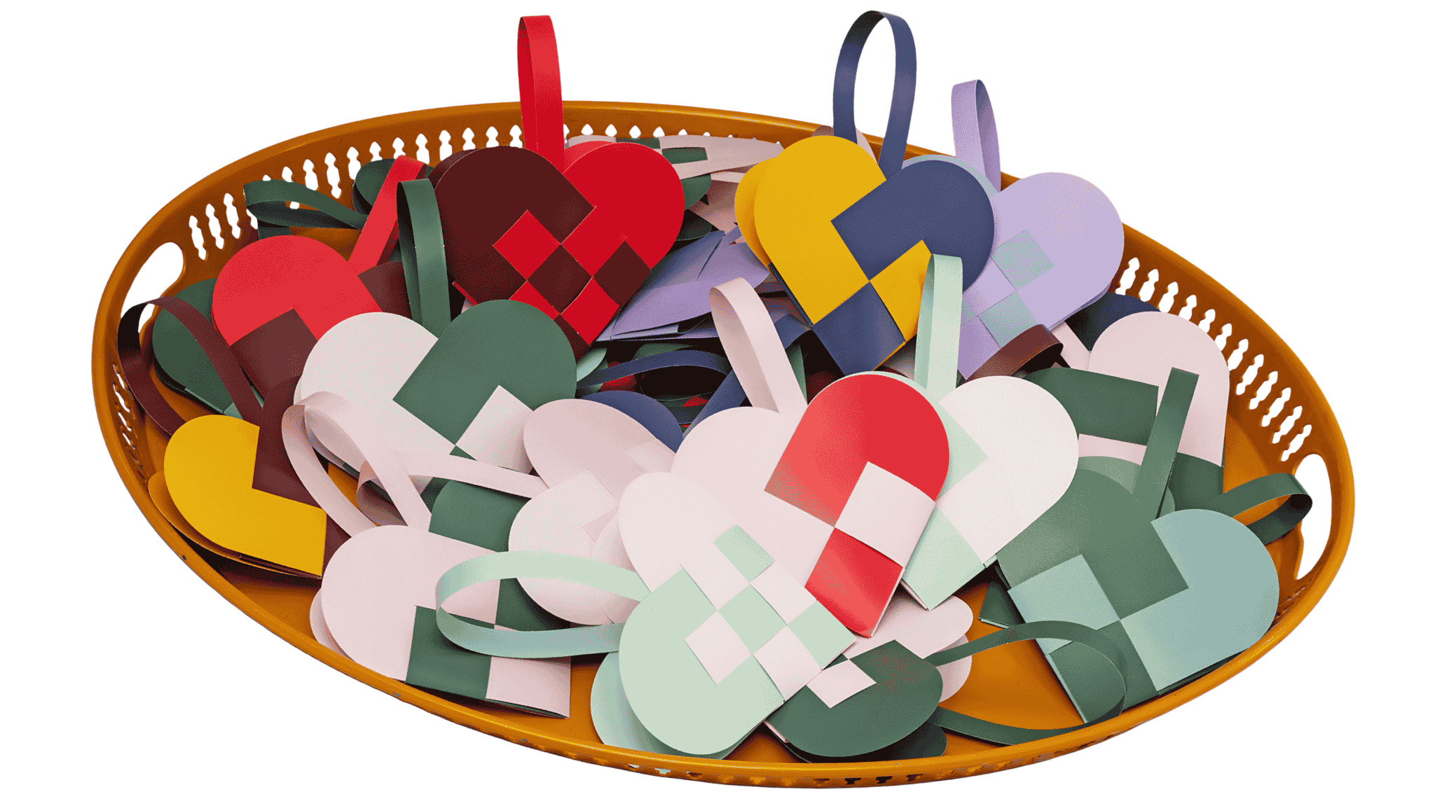Weave them together, and a heart basket appears — to hang, to gift, or to keep.