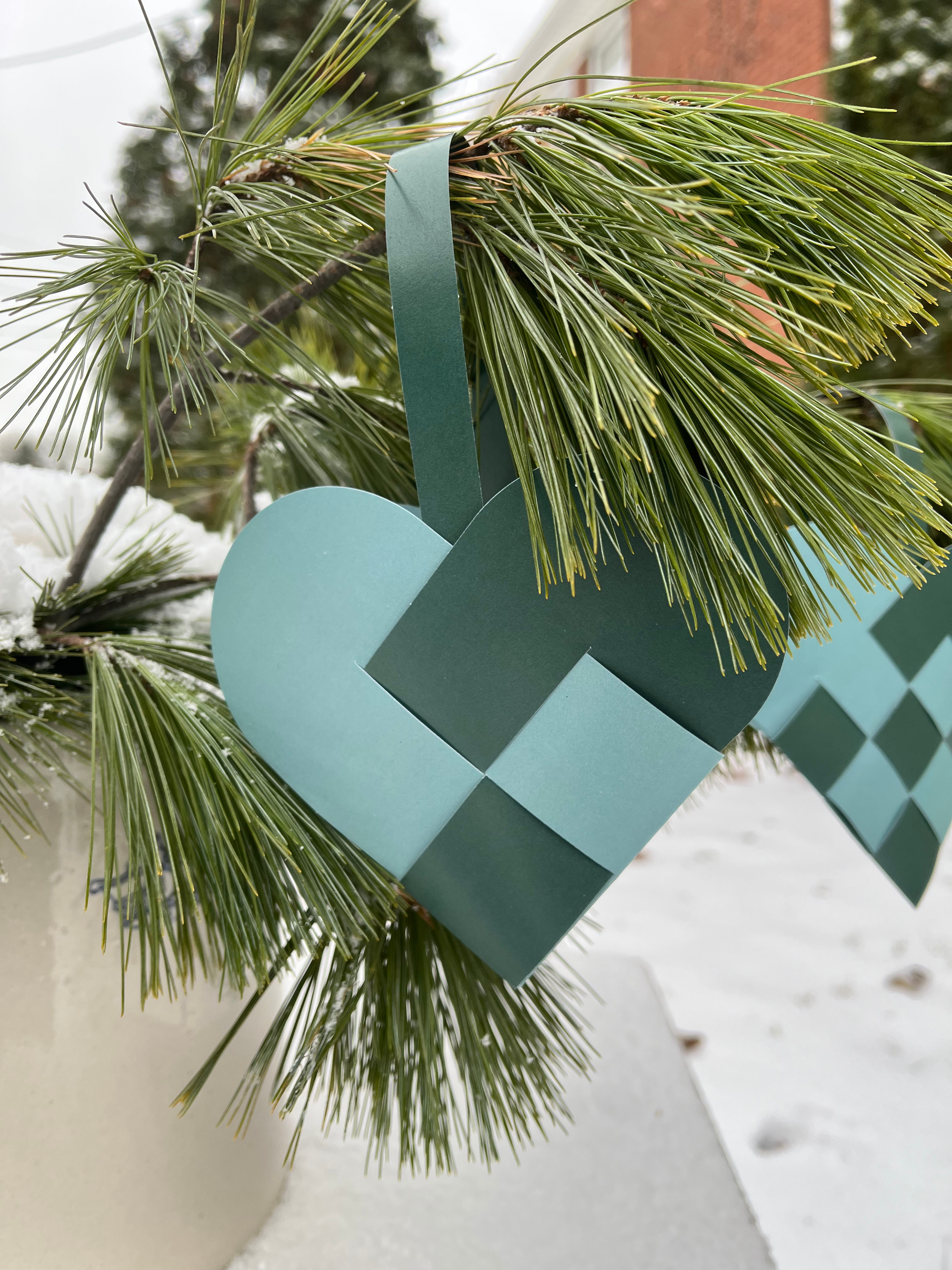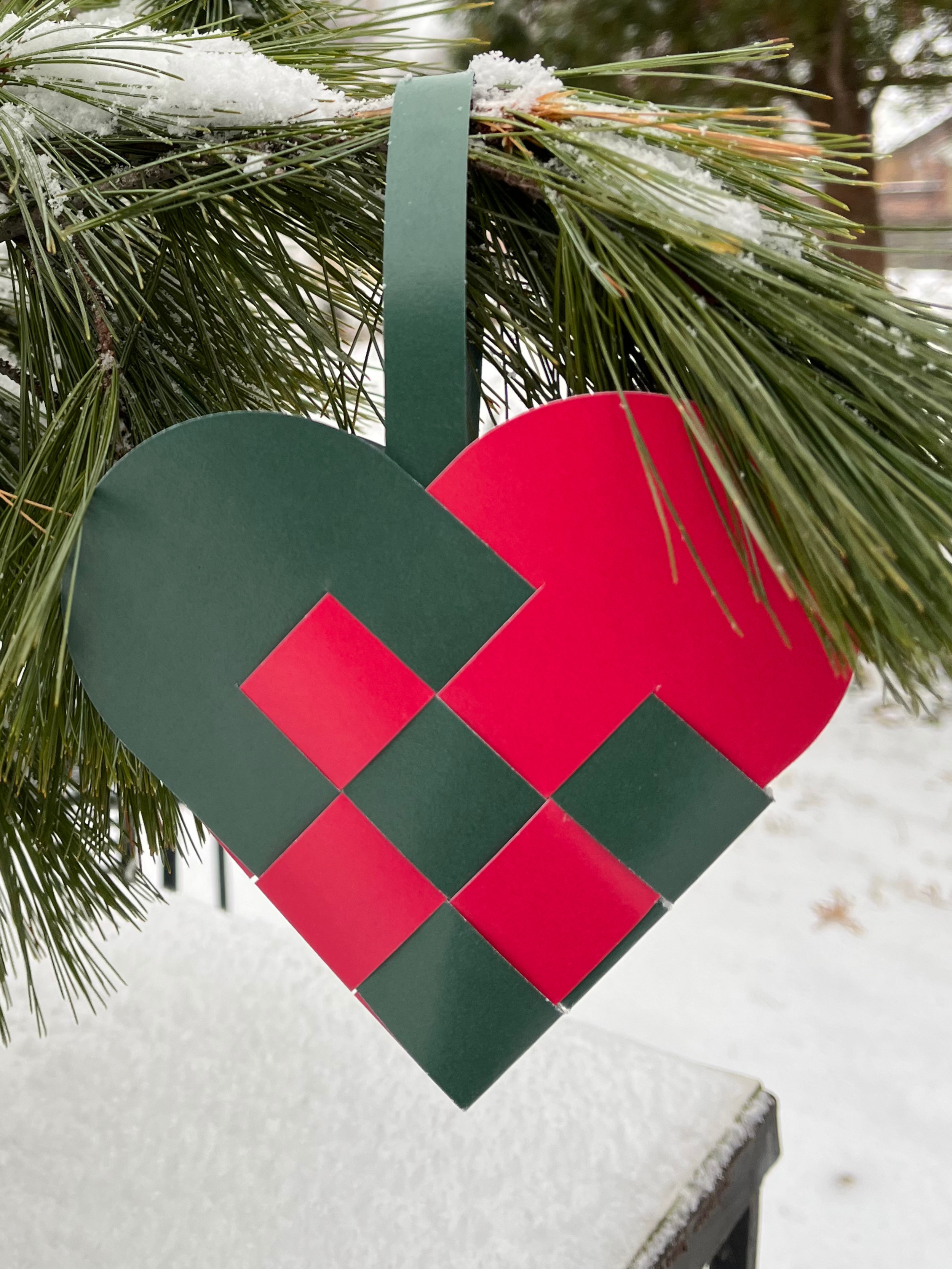 The hearts shown are assembled so you can see the calm, beautiful weave the colors create.